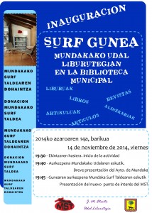 El próximo viernes, 14 de Noviembre de 2014, se inaugurará la zona de libros de Surf donados por el Club de Surf de Mundaka a la Biblioteca Municipal de Mundaka. Os animamos a donar alguno de vuestros libros de Surf y así ir enriqueciendo esta nueva sección. Gracias!!! Este es el Link donde puedes ver…